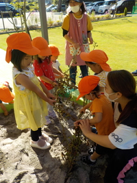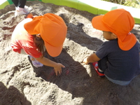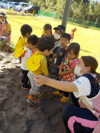 事前に砂場に隠してあるお芋を引っ張る・探すといった